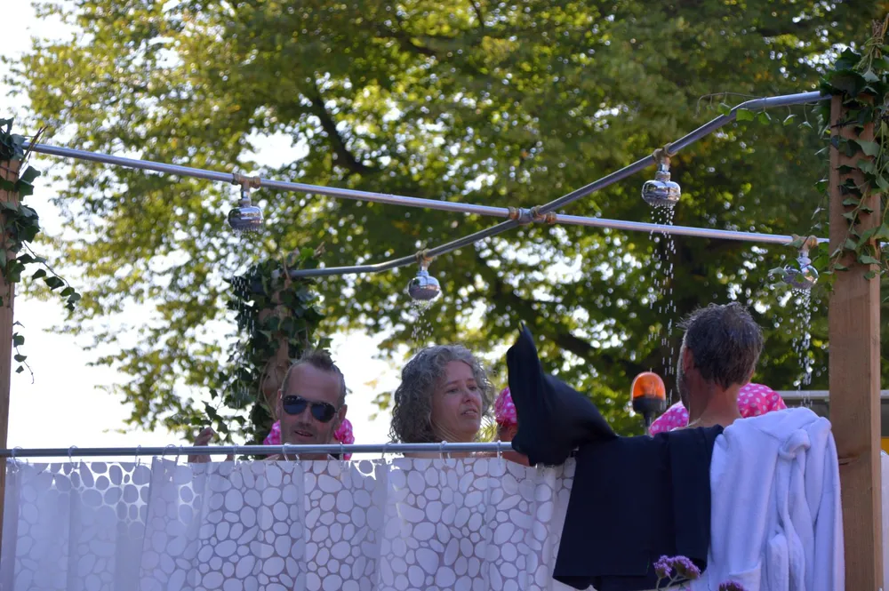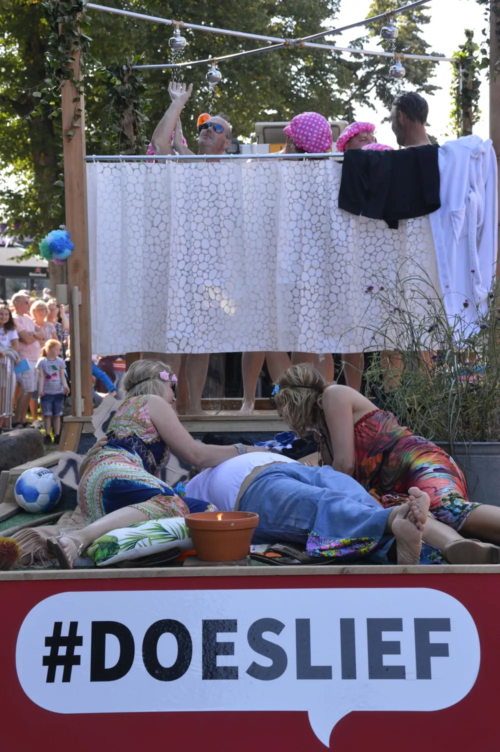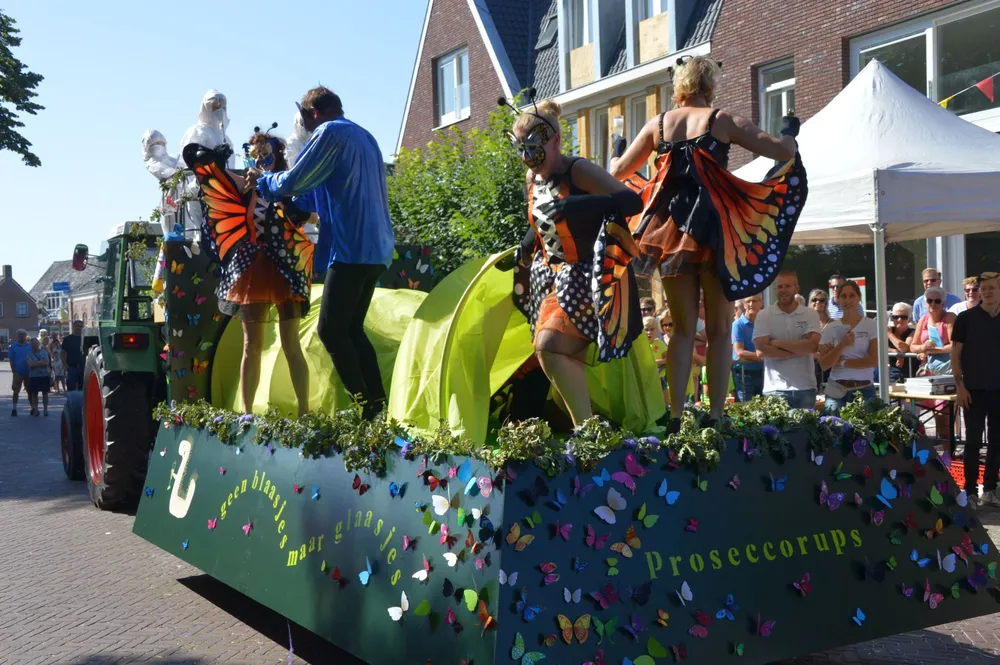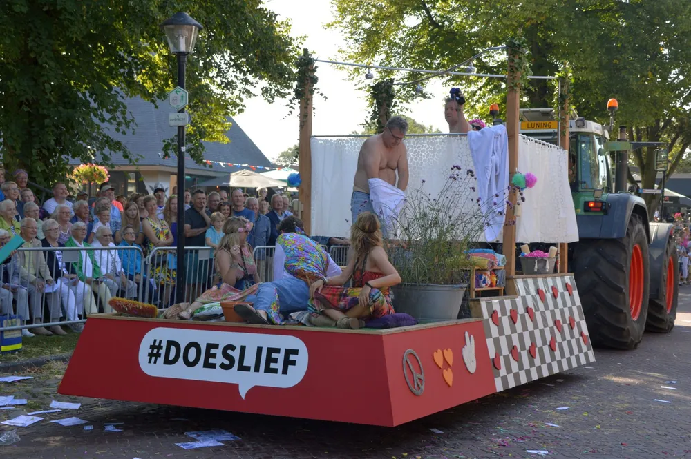 Ruinen - De optocht van versierde wagens en loopgroepen in Ruinen vergde vanmorgen bijna drie uur, althans, dat was alleen nog maar de presentatie voor de jury op de Brink. Die begon om negen uur en pas om twaalf uur ging de wagen met daarop muziekvereniging Crescendo rijden om aan de ronde door het dorp te beginnen.